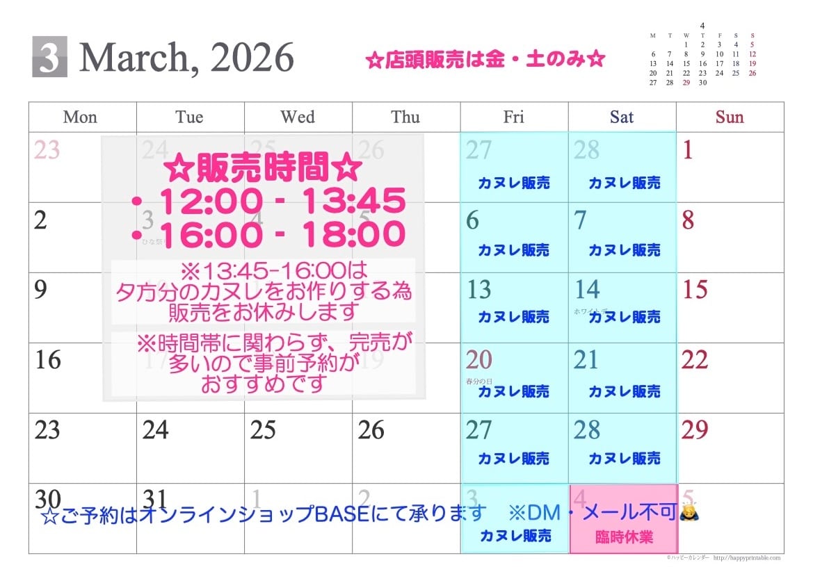 【予約受付】3/2(月)10:00〜4(水)20:00